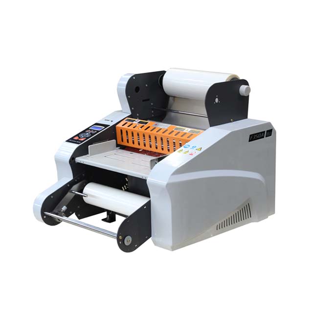 Laminator F-350A to urządzenie z niezależnym systemem grzania dolnego i górnego wałka laminującego, co daje możliwość laminowania jednostronnego i dwustronnego, na zimno i na gorąco. Rozdzielanie laminowanych arkuszy ułatwia zestaw noży perforujących do obu rolek. Laminator posiada czujnik braku podania arkusza i regulowany układ prostowania arkuszy. Cyfrowy programator i szybki czas nagrzewania urządzenia zapewniają prostą obsługę. Urządzenie jest doskonałe do laminowania zaproszeń, pocztówek, okładek czy kalendarzy.
